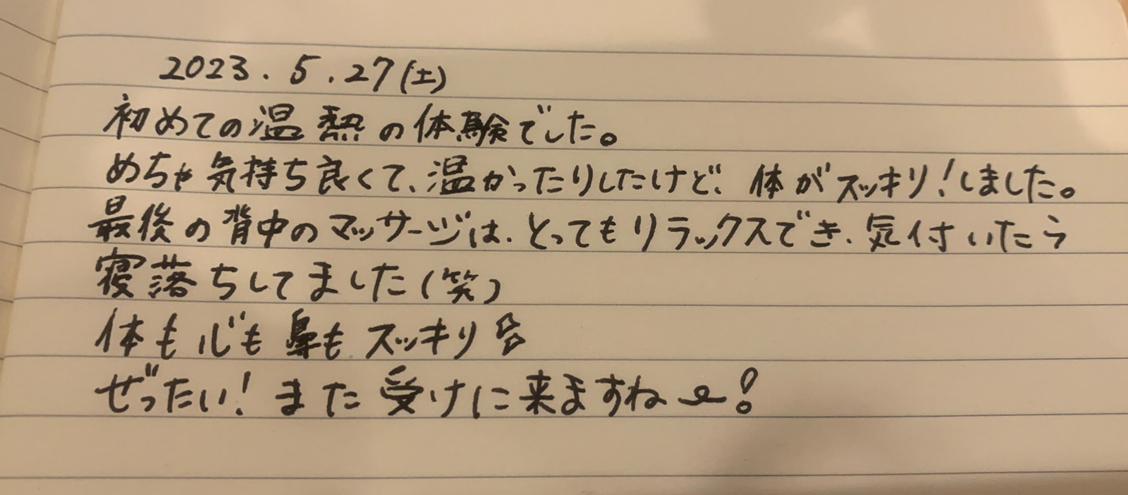 めちゃ気持ちよくて、温かったりしたけど、体がスッキリ!しました。